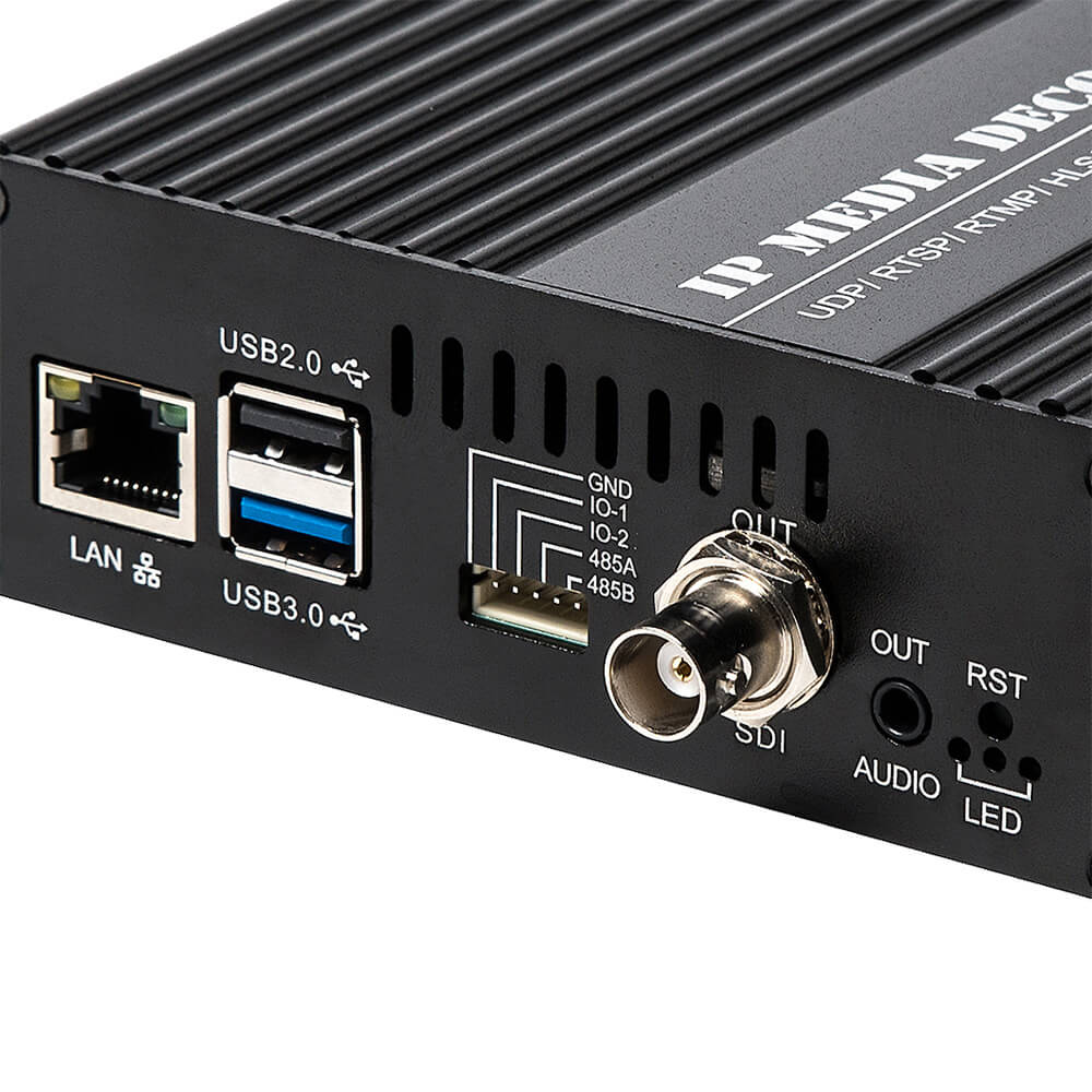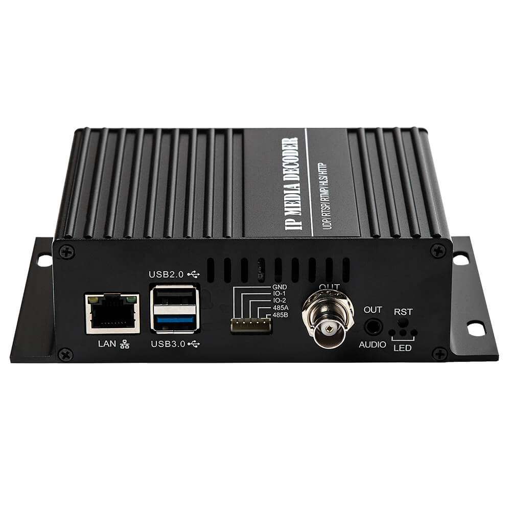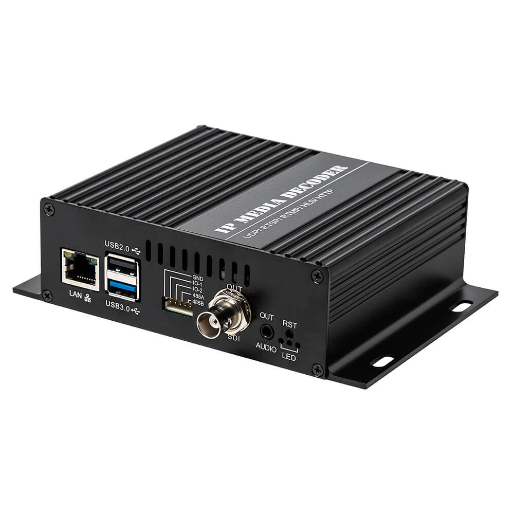 TBS2663 is a SDI HD decoder, which support H.265/H.264 audio and video decode, it's IP input (supports IP( RTMP/RTMPS/ RTSP/ RTP/ HTTP/ HLS/ UDP/SRT), MPEG2, MPEG4) and has a SDI, a USB and RS485 ouput. TBS2663 is a decoder engine with the ability to decode videos up to 1080p 60fps video, compatible with multi-protocols, supports H.264/H.265/MPEG-1/MPEG-2/MPEG-4/VP8/VP9/AVS/AVS+ video decode, AAC/MP3/G.711 audio format.